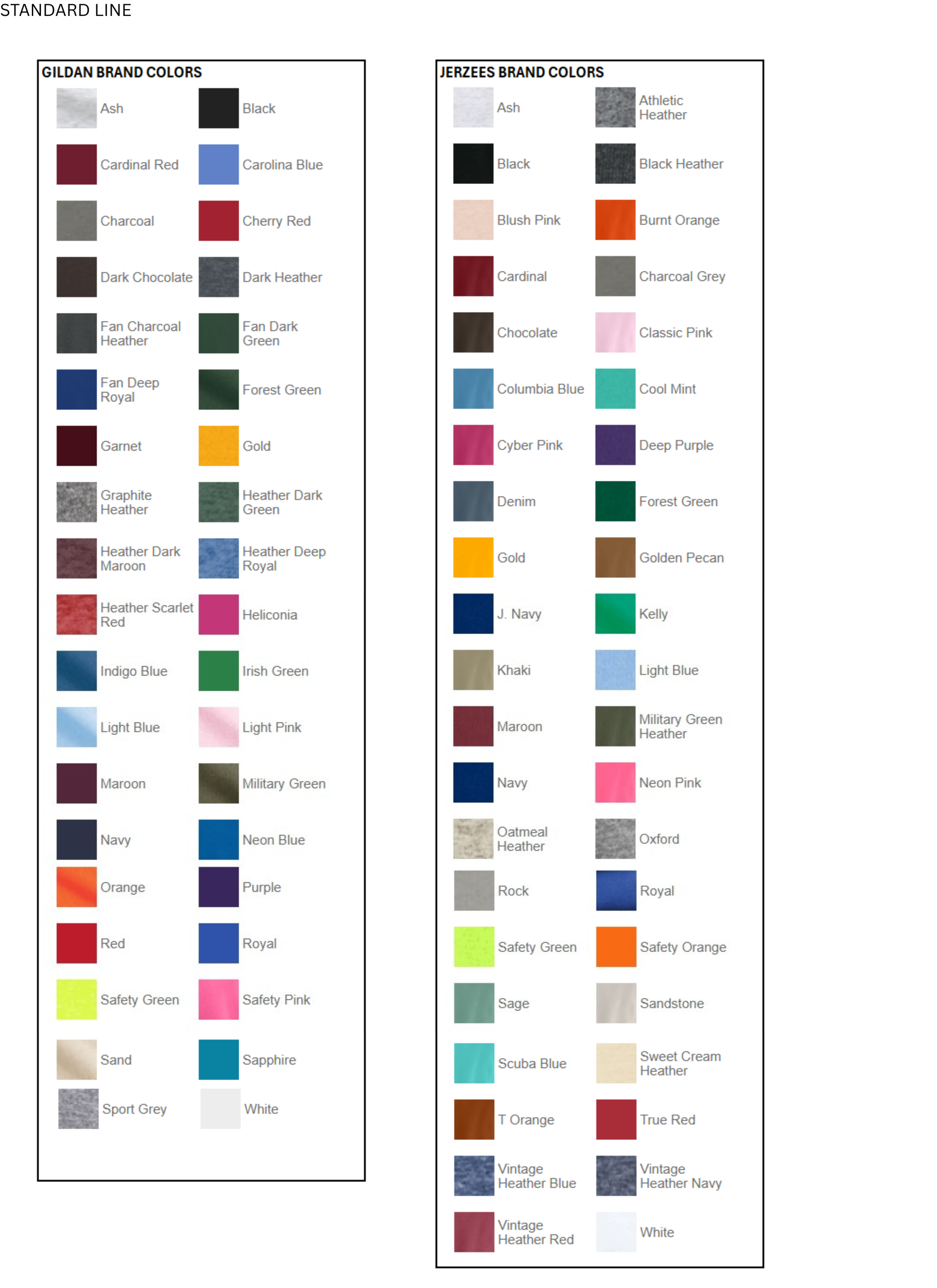 Our shirts are unisex fit suitable for both women and men. Our standard line is 100% cotton and includes apparel from trusted brands like Hanes, Port & Company, Jerzees and Gildan.