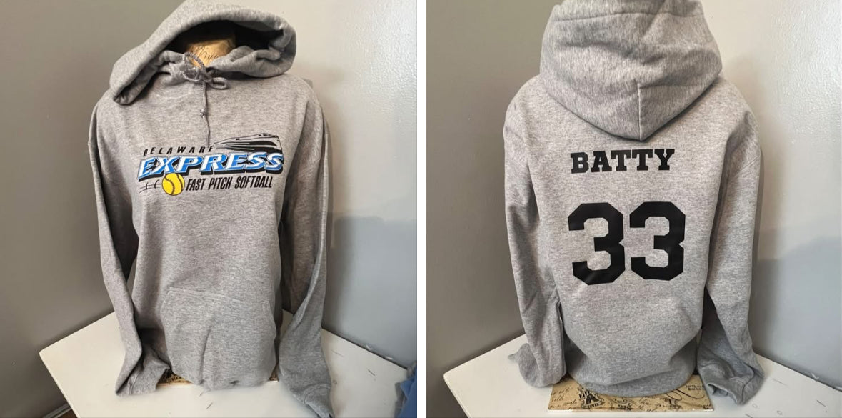 To add a name and/or number on the back of the shirt, select the FRONT AND BACK IMAGE option and input the name and number in the CUSTOM REQUEST box.